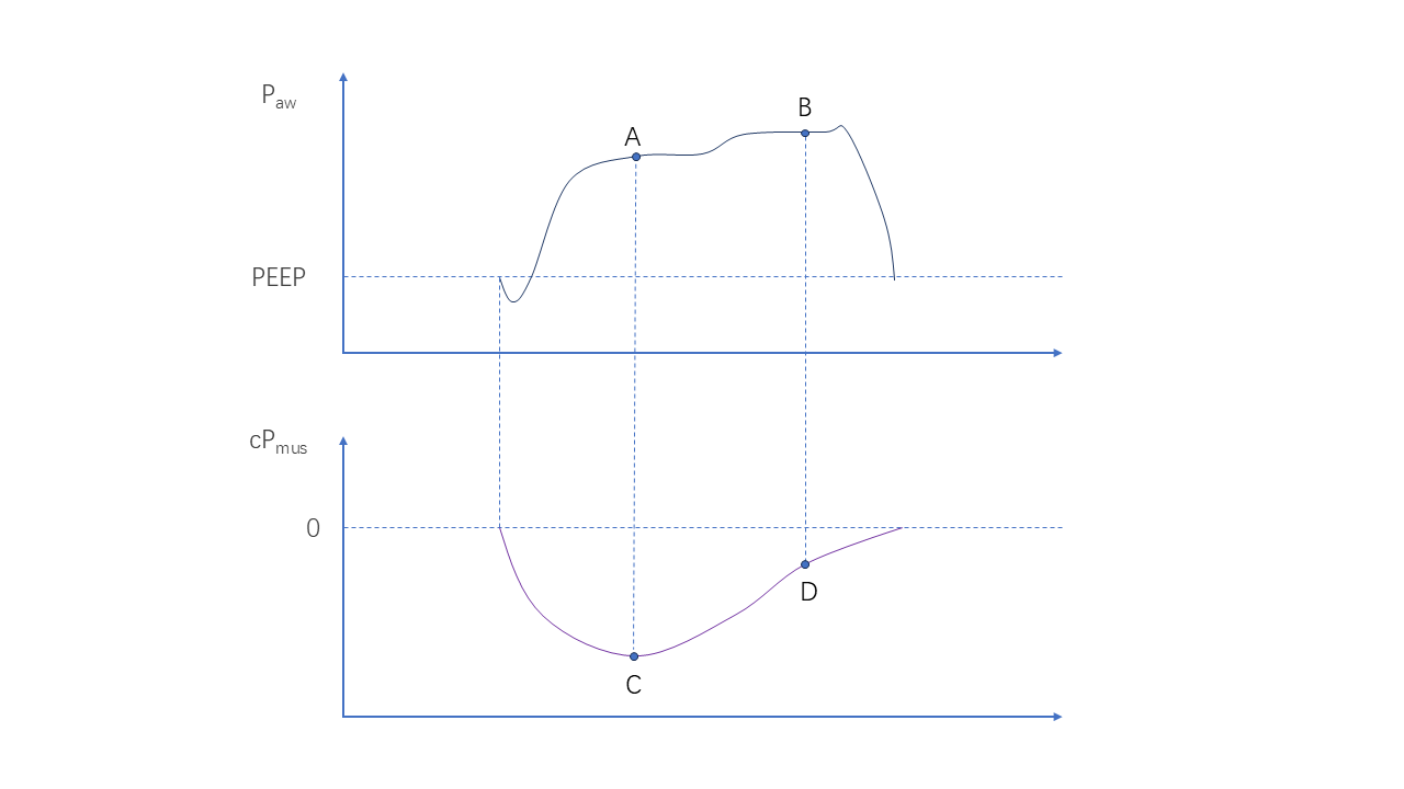 呼吸肌做功形成的负压。正常的呼吸,一般胸腔内负压是下降-5cmH2O,机械通气时,Pmus最好是在-5~-15cmH2O。影响Pmus的,主要是触发,切换,吸气上升时间,支持压力,PEEPi的影响。